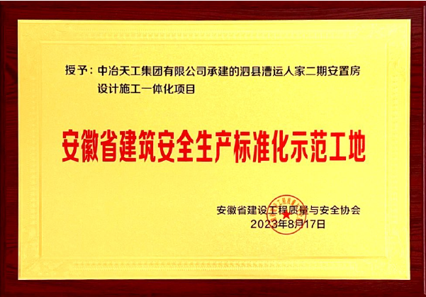 2023-124泗县漕运人家二期安置房设计施工一体化项目工程安徽省建筑安全生产标准化示范工地(牌匾)