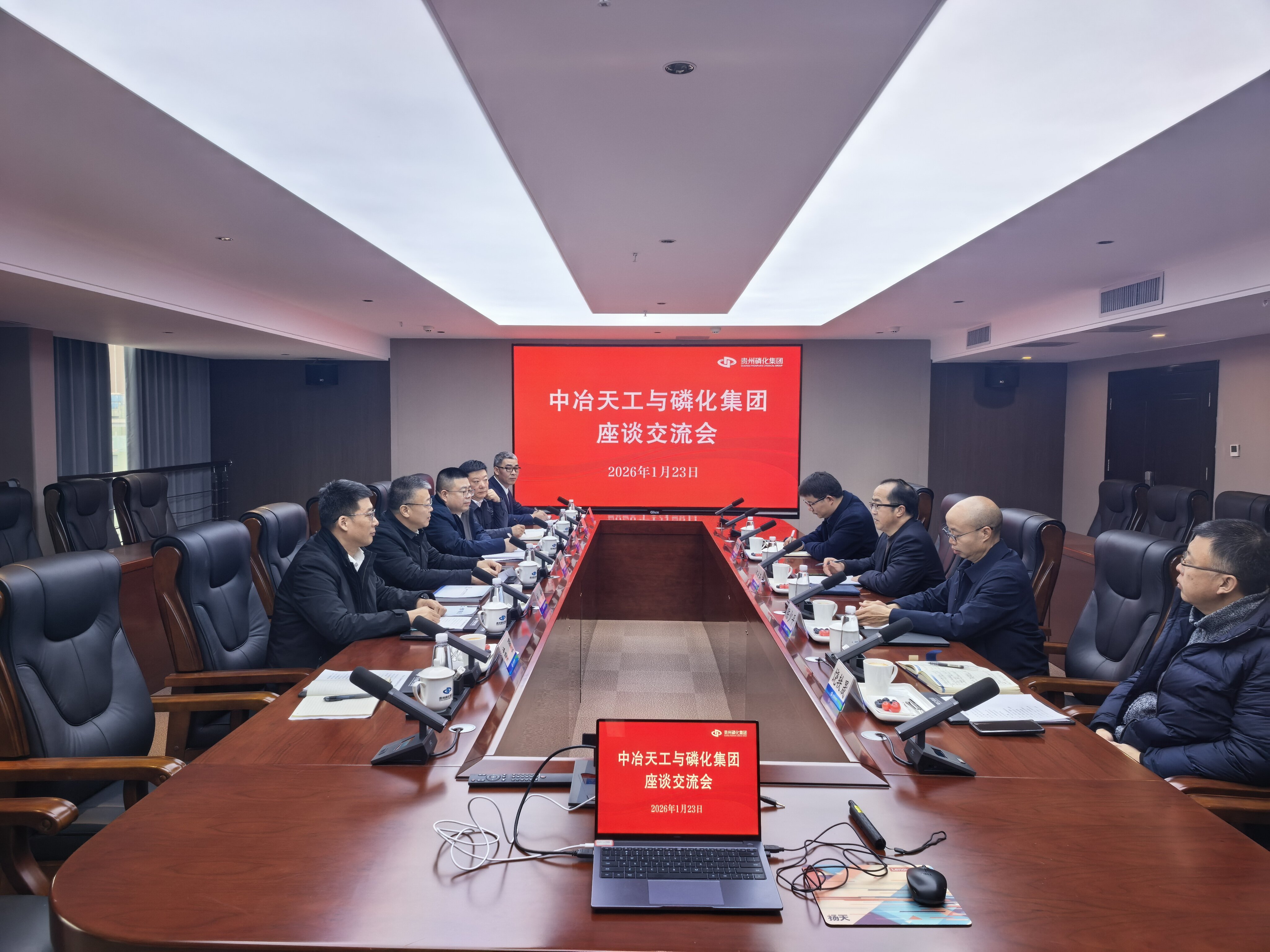 1月23日,公司黨委書記、董事長高文華拜會貴州磷化(集團)有限責任公司黨委書記、董事長何光亮,雙方圍繞深化產業協同、拓展合作領域等議題舉行座談交流,就共建高質量發展體系達成廣泛共識。